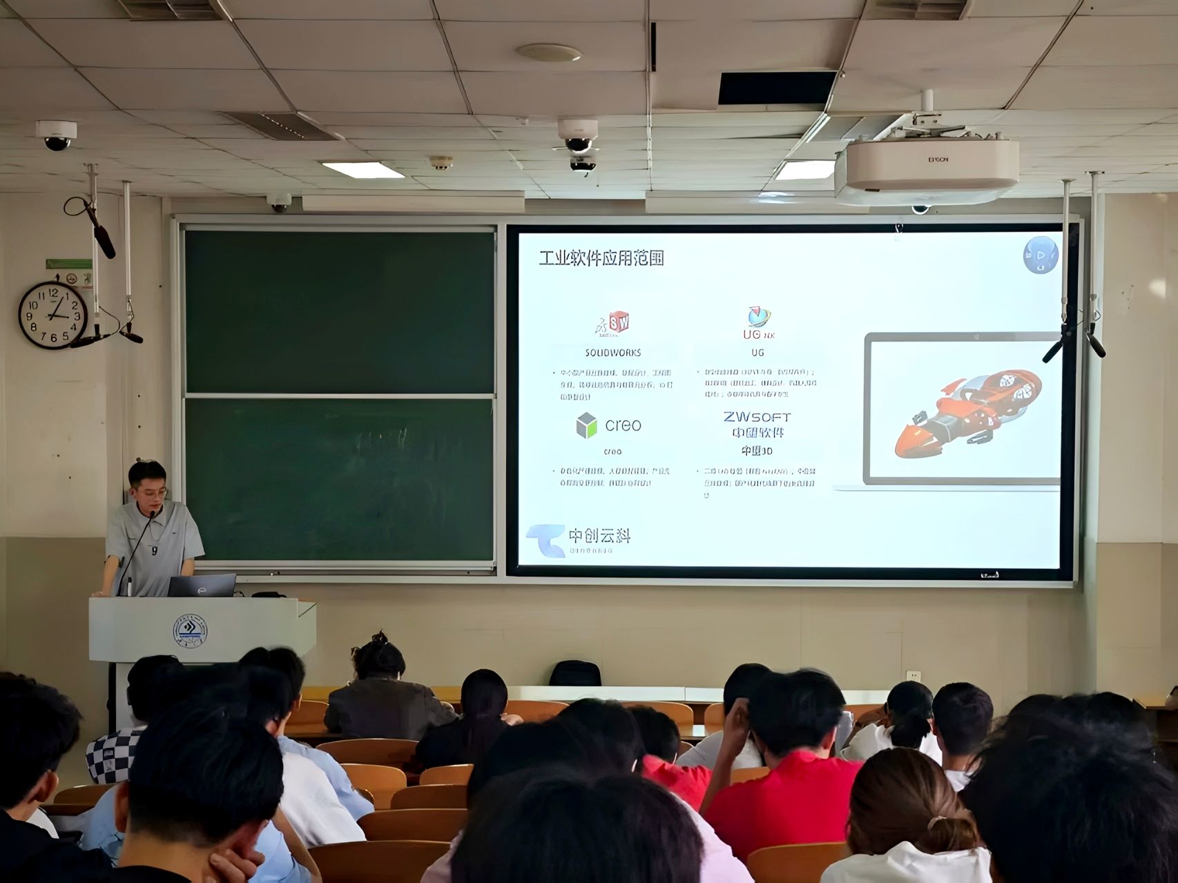学院举办科技文化艺术节首场讲座,吸引100余名师生参会,特邀中创云科教育科技有限公司王晨宇经理主讲工业软件发展与应用。王经理主要围绕工业软件发展历程、不同软件特点、SolidWorks软件及插件应用展开讲解,结合案例演示3D建模、仿真分析等功能,重点介绍了从设计到制造的集成解决方案,内容兼具专业性与实用性。现场学生反应热烈,专注记录关键知识点,尤其对SolidWorks的3D PMI标注、机电协同设计等功能表现出浓厚兴趣。答疑环节中,学生踊跃提问,涵盖软件学习路径、赛事应用技巧等问题,王经理逐一细致解答。与会学生表示,讲座不仅明晰了工业软件在机械设计中的核心作用,还为后续参与科创竞赛、毕业设计提供了技术方向,更激发了学生探索数字化设计的热情。此次讲座为科技文化艺术节拉开良好序幕,为师生搭建了工业软件学习交流平台,助力提升学生工程实践与创新能力。