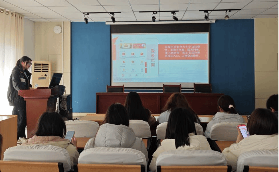 培训会围绕团支部工作指南、团员发展、入党积极分子管理、思想建设等核心板块有序推进。在团支部工作指南与团员发展部分,2024 级团支书代表李梦伟通过 PPT 演示结合实操教学的方式,细致拆解智慧团建系统的功能入口、团员信息维护等关键操作要点,清晰明确发展团员的全流程规范,着重强调材料审核、公示等环节的严谨性;同时系统梳理团支书日常工作重点,帮助新生团干部快速厘清工作边界、掌握履职关键。