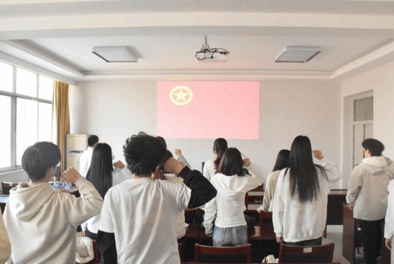 仪式最后,全体新团员肃立在团旗前,身姿挺拔,庄严地举起右手、握拳过肩,以洪亮而坚定的声音许下青春誓言。誓言铿锵有力,承载着新团员对团组织的向往,彰显新时代青年奋斗的坚定信念。