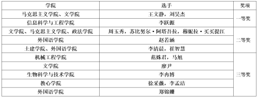 经过激烈的角逐,最终,来自文学院的刘昊杰等两组选手获得一等奖,马克思主义学院的苏比努尔·阿塔吾拉等三组选手获得二等奖,机械工程学院的范姝君和马旭等五组选手获得三等奖。