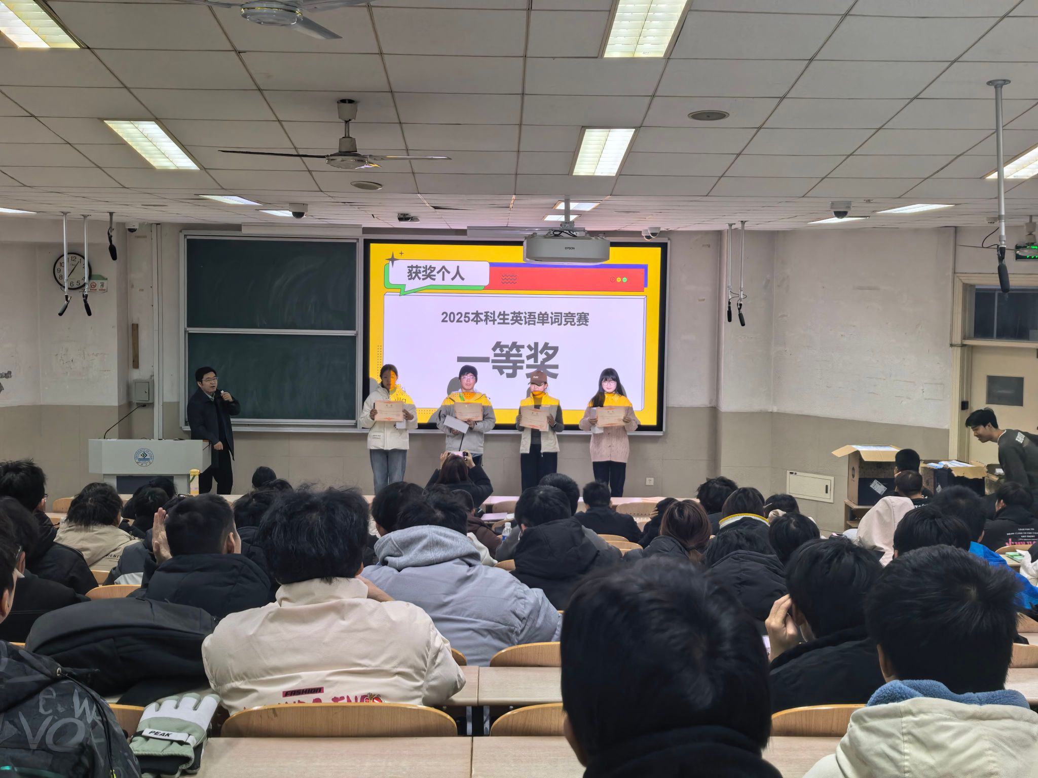自2025年暑假开始,学院启动“第〇学期”学习计划,曹影老师每天为2025级本科生发送30个四级英文单词及翻译热点词汇供参考学习。经过两个月的备战与激烈角逐,竞赛获奖名单于12月29日正式揭晓。