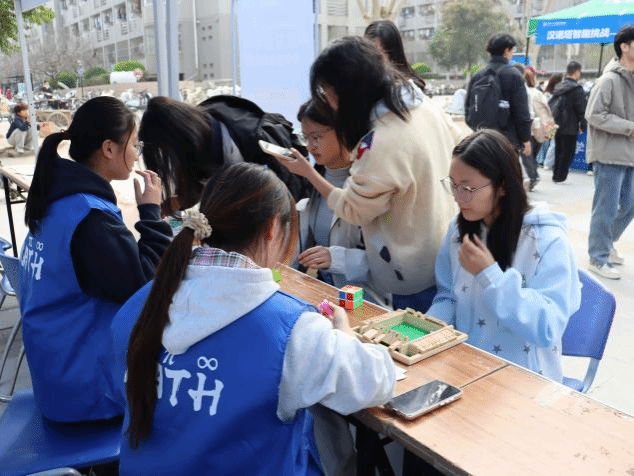 启动仪式前后,师生共同参观数学科普文化展览并体验“π仔嘉年华”趣味游园会,在轻松愉悦的氛围中感受数学的魅力与乐趣。游园会项目覆盖基础运算、逻辑推理、空间思维、跨学科融合等维度,各关卡兼顾挑战性与体验感。数独大作战考验逻辑推理与全局统筹能力,数字飞花令实现数学与古典诗词的跨界融合,扑克牌算数王比拼速算技巧与策略思维,数字华容道锻炼空间推理与路径规划能力……活动现场人气高涨,不时传来阵阵喝彩。本届数学文化节以“数韵智慧,π启新程”为主题,是学校深化育人内涵、繁荣校园文化、服务学生成长成才的重要举措。后续将持续延伸活动价值,创新活动形式,引导广大学生感受数学的严谨之美、逻辑之趣与应用之广,在探索数学世界的过程中培养科学思维、提升创新能力,为人才培养和校园文化建设注入新的活力。