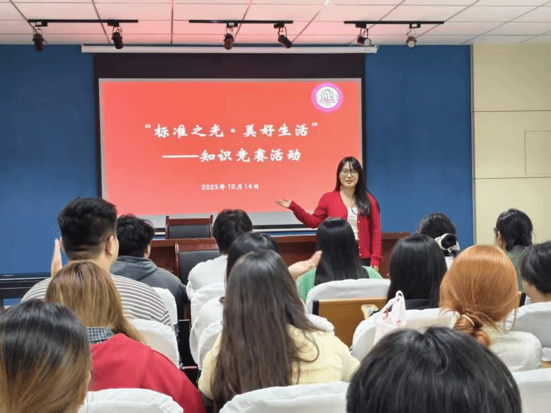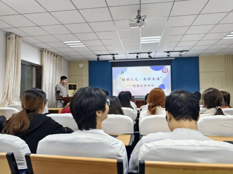 下午16时30分的标准解读大赛现场,志愿者承担起现场协调、互动辅助的关键角色。在宣讲环节,志愿者们协助主讲人,引导同学围绕“外卖餐盒为何需标注特定标准号”“文具甲醛含量符合什么要求”等问题展开思考;在互动问答环节,志愿者们及时记录同学疑问,协助主讲人用“理论+案例”的方式逐一解答,让“标准化保障消费者权益”的认知深入人心。