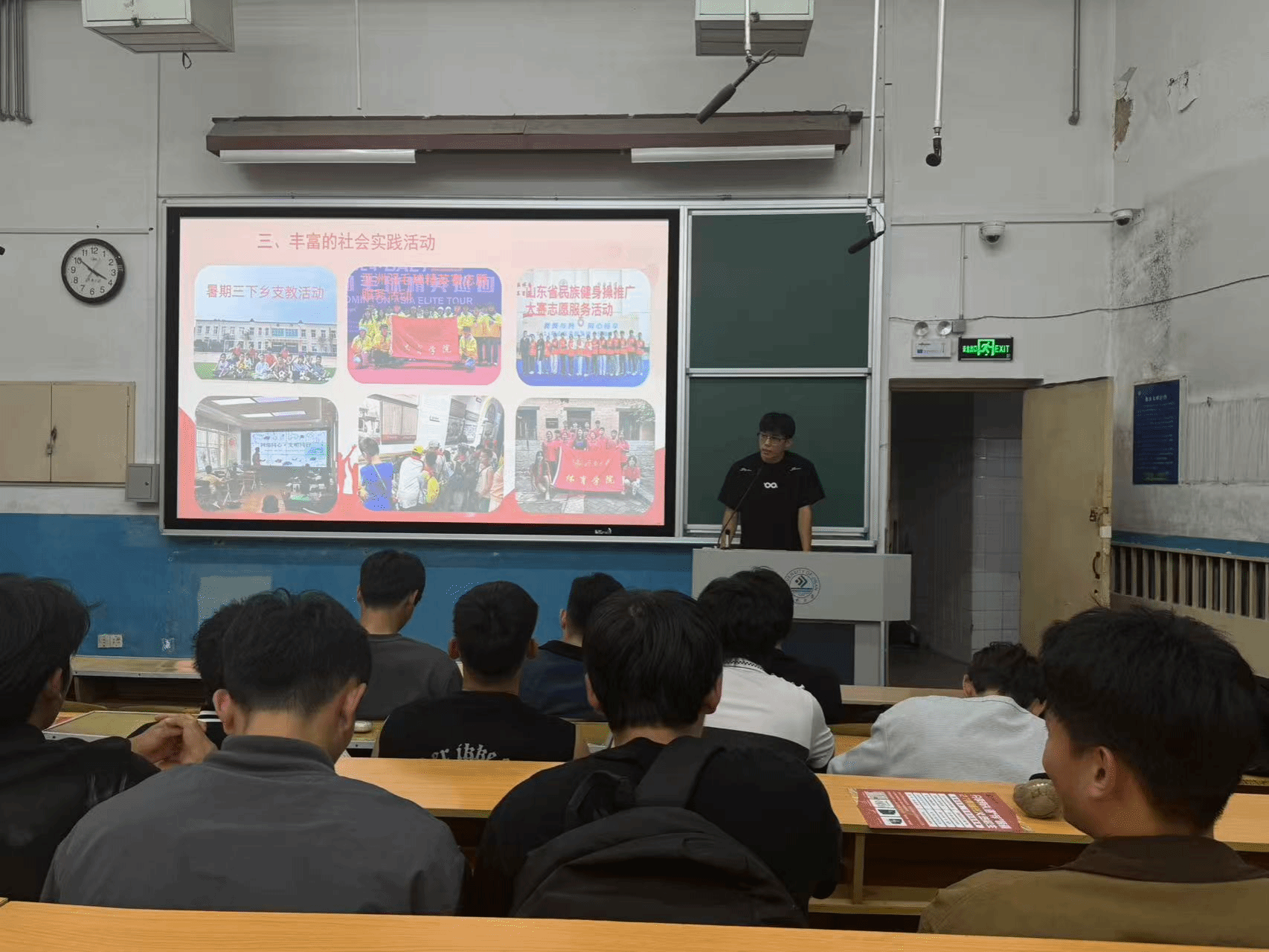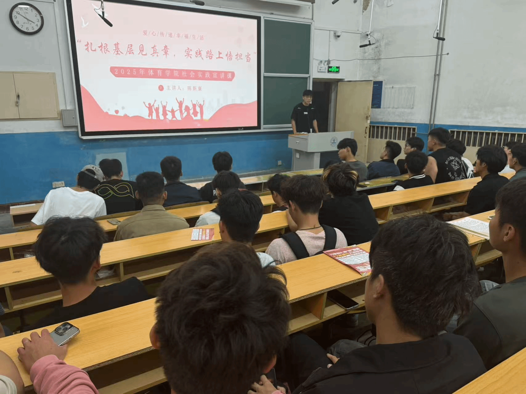 宣讲中,陈新康以济南大观园社区实践经历为蓝本,生动分享了社区儿童体育辅导、户外研学、网络安全宣讲、社区环境保护等多元服务场景。“在教孩子打球时,我读懂了‘体育育人’的温度;在参与社区环境整治时,我明白了‘服务社会’的重量。”他坦言,基层实践是知识落地的“转换器”,更是倾听民生的“连心桥”,这份经历让他的社会责任感在服务中厚植生长。