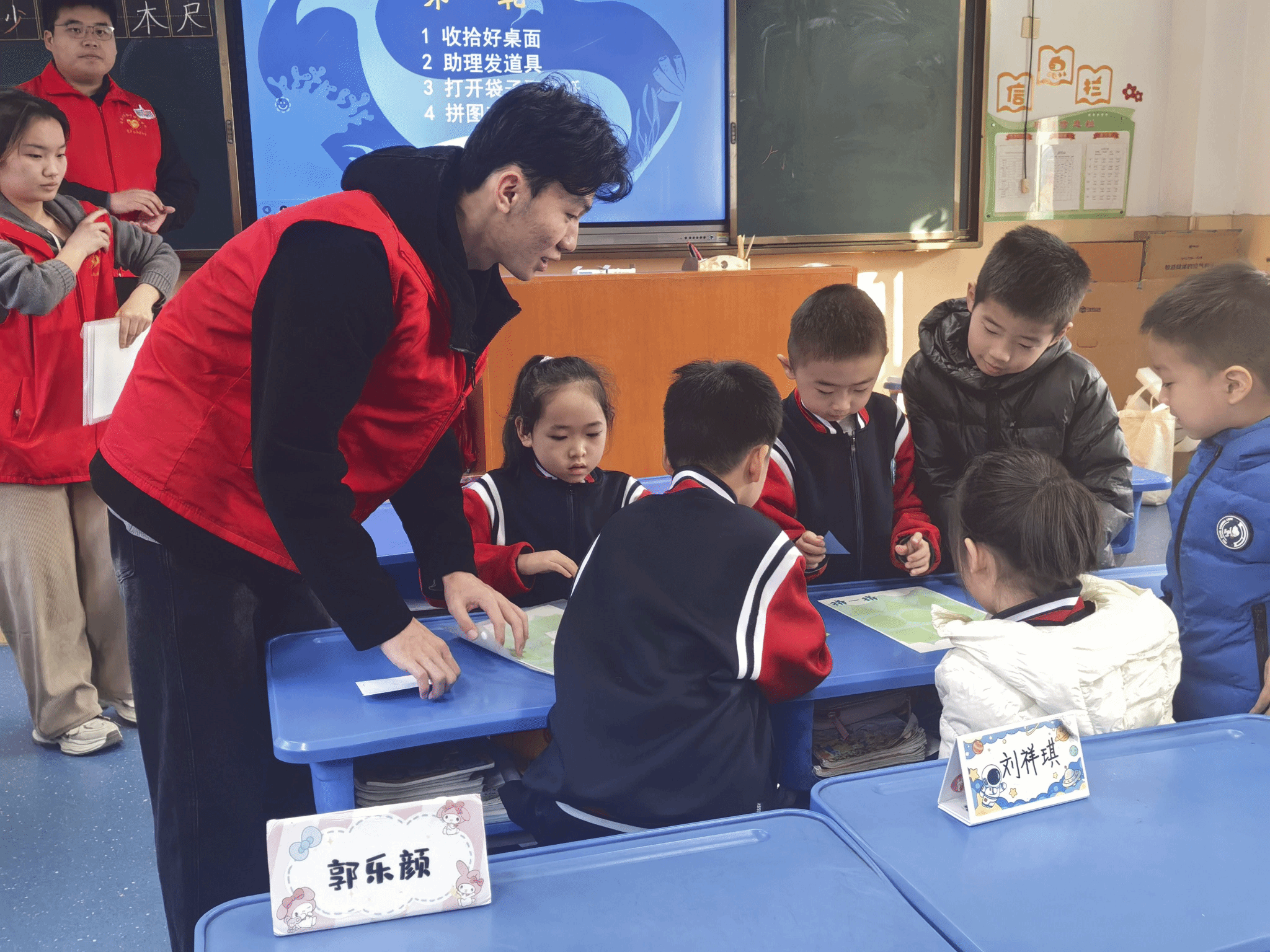 为积极响应山东省 “百万大学生进社区” 专项行动号召,切实履行高校服务地方、践行社会责任的使命担当,12 月 9 日下午,william威廉亚洲官方数学科学学院青年志愿者协会组织志愿者队伍,走进济南市市中区德贤社区,为辖区内的后龙小区一年级小学生开展了一场趣味十足的垃圾分类科普课堂活动。
