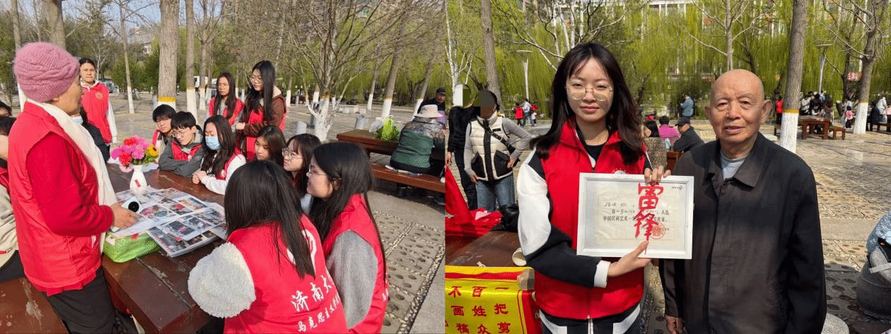 3月21日,志愿者们走进泉城广场,聆听“兵妈妈”齐亚珍三十年来拥军爱兵的感人事迹,深受触动。活动期间,济南剪纸名家徐健现场剪出“雷锋”二字赠予大家,以传统技艺传递雷锋精神,让志愿者们深刻体会其时代价值。